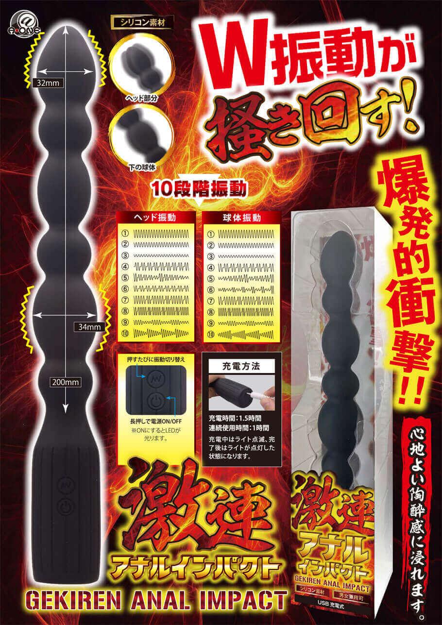 連なった大小6つの凹凸が、尻穴を掻き回す!!シリコン素材で挿入感とっても滑らか。強力で重みのある振動が、お尻全体を震わせる。