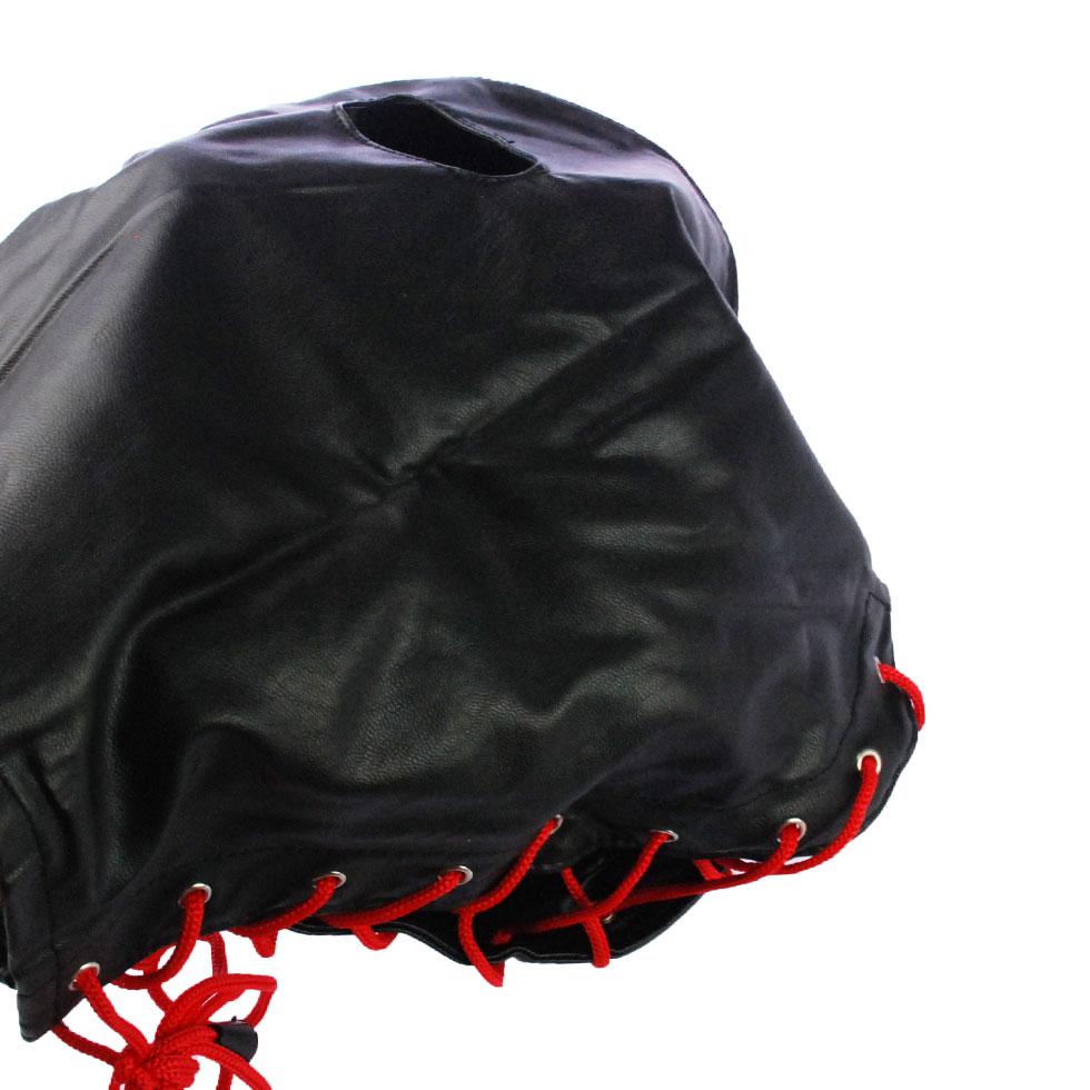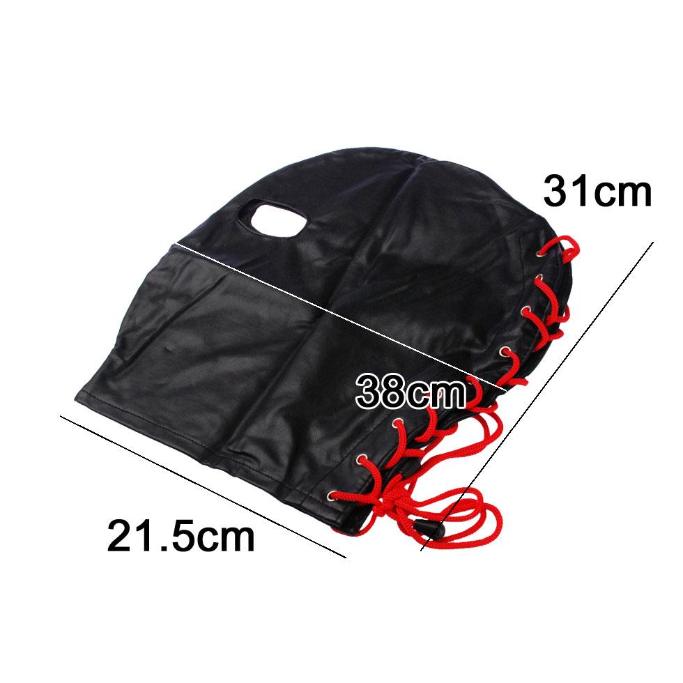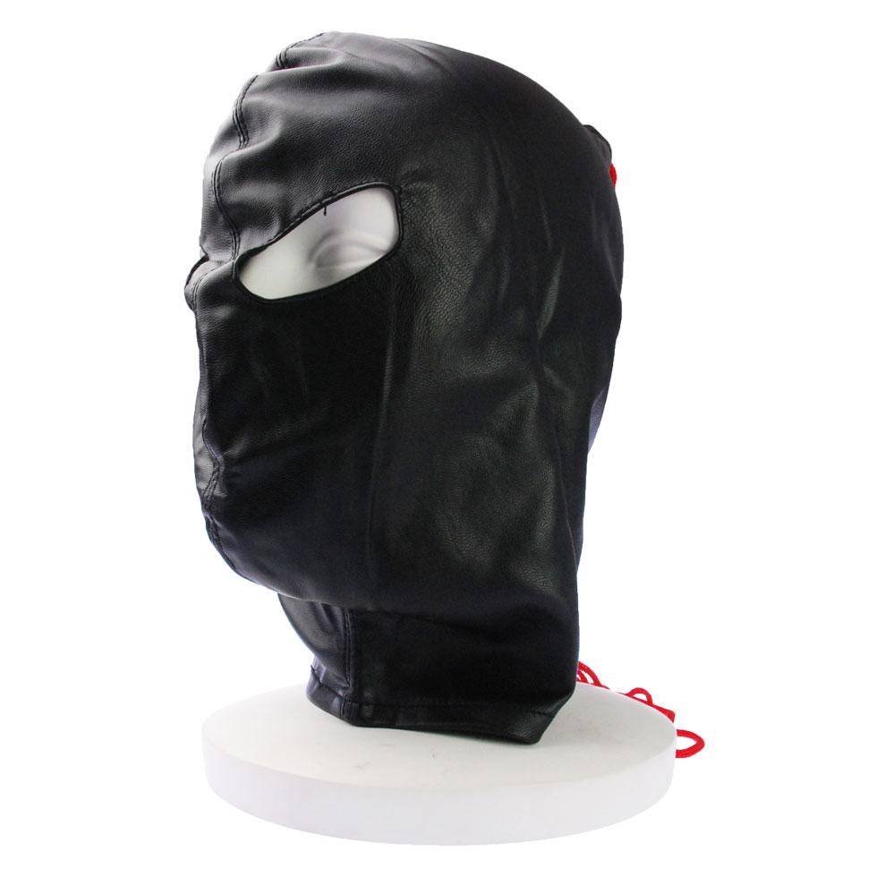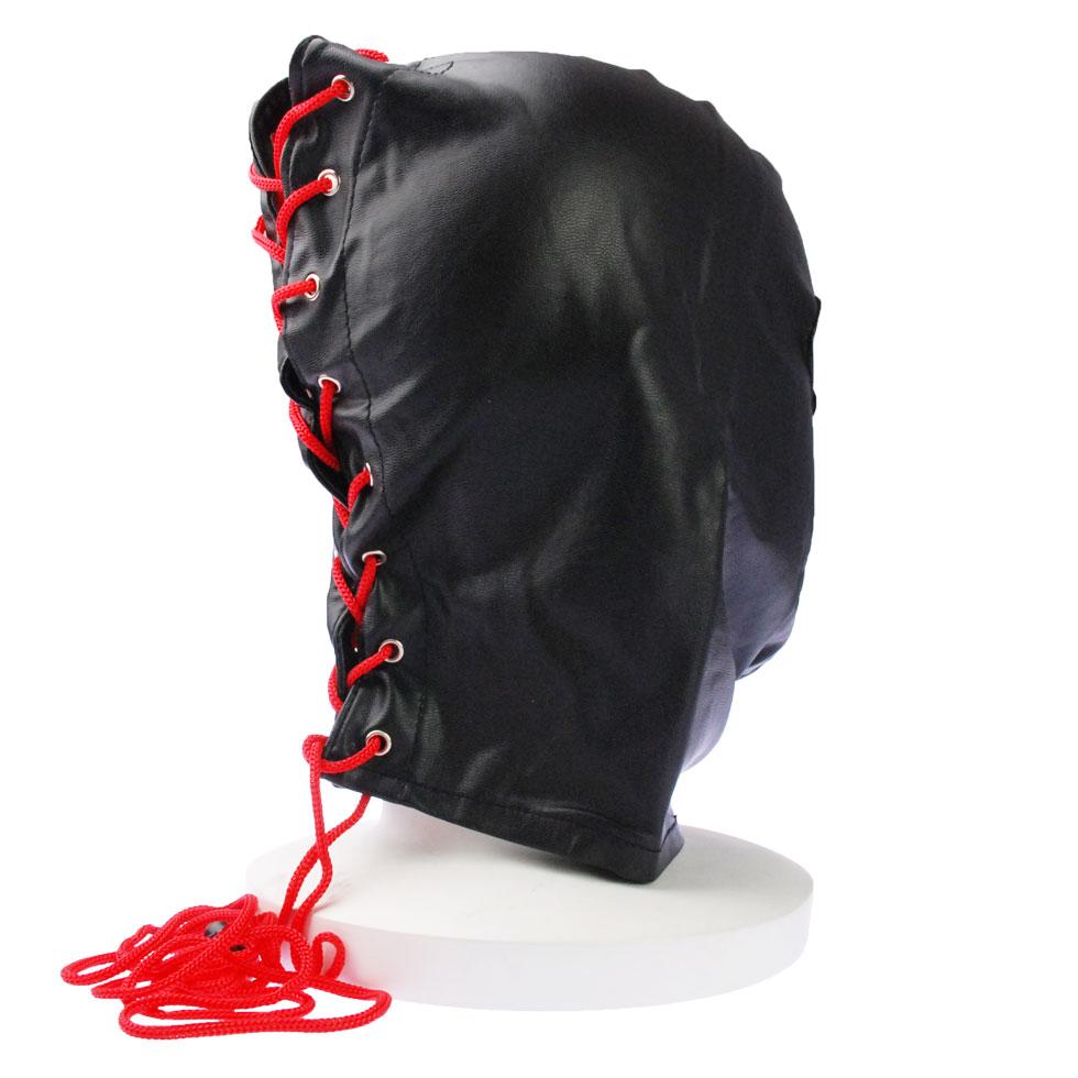 →両目部分のみに穴の開いた全頭マスク。後頭部は編み上げで調節可能