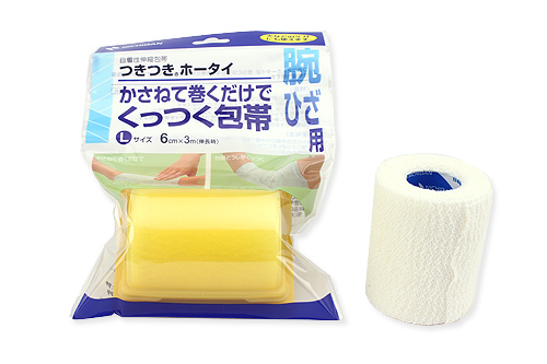 粘着剤がついてないのに包帯同士がくっつく不思議な包帯です。