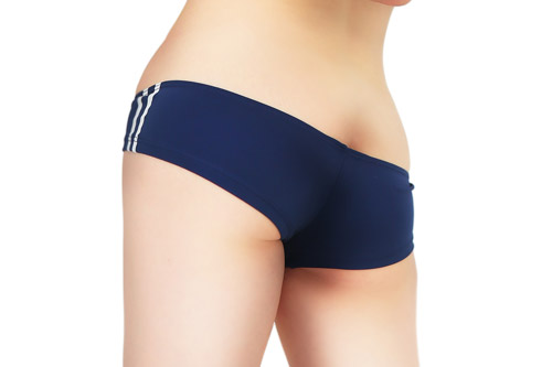 丈の浅いデザインで、お尻と鼠径(そけい)部を美しく見せるセクシーなブルマです。