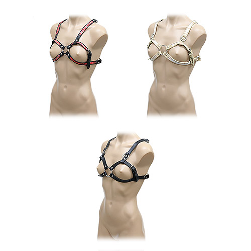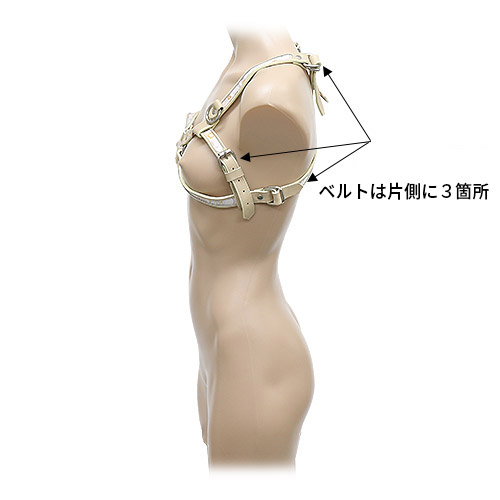 こちらの乳枷はブラジャーのように胸に装着するタイプのSM拘束グッズ。本グッズ単体では拘束プレイを楽しめません。別売りの手枷などと組み合わせることでさまざまな体勢で拘束プレイをお楽しみいただけます。