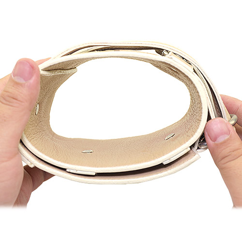 ベルトのサイズは最大約50cm。素材は本革を使用しているので、肌触りがよく肌にやさしくフィットします。使い込むうちにこのフィット感は高まります。