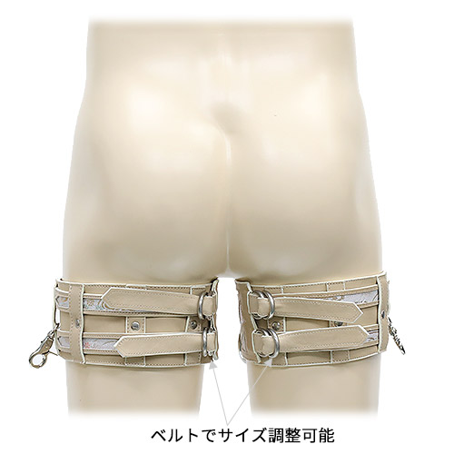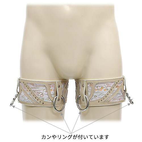 こちらの腿枷はその名の通り、腿(もも)に装着するタイプ。本グッズ単体では拘束プレイを楽しめません。別売りの手枷などと組み合わせることでさまざまな体勢で拘束プレイをお楽しみいただけます。