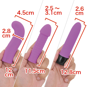 付属する専用ディルドは2種類のサイズがあり、どちらも素材はソフトなシリコン製。脱着も簡単でメンテしやすく、サイズや造型に関しても変に尖ったところがない、万人向けの仕様といえるでしょう。