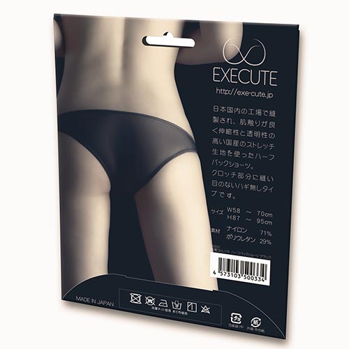 日本国内の工場で縫製され、肌触りが良く伸縮性と透明性の高い国産のストレッチ生地を使ったハーフバックショーツ。