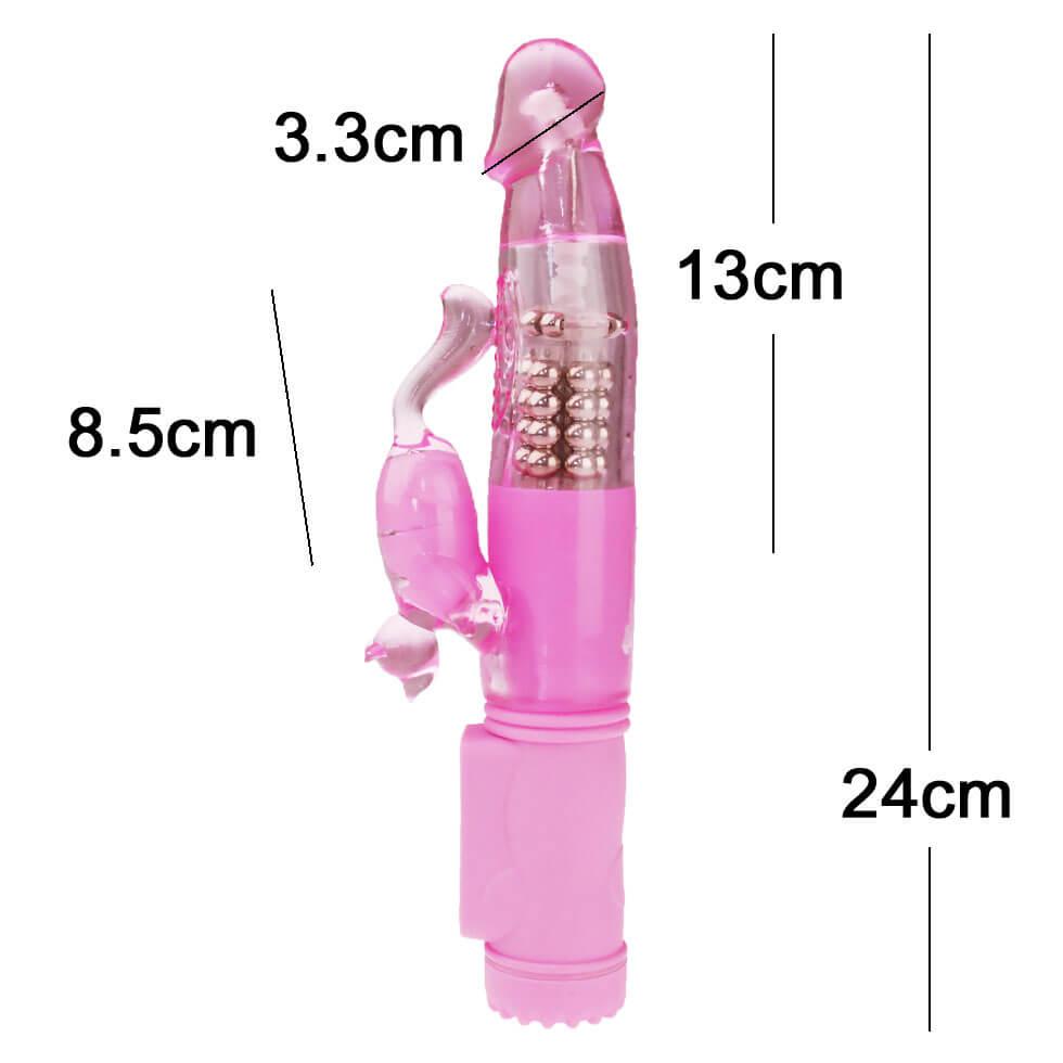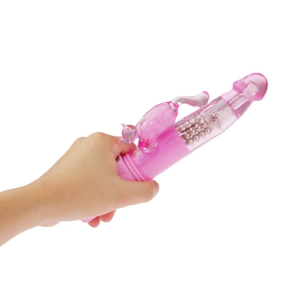 たっぷり長さと4連パールで膣の奥も手前も責め立てるパワフル2点責めバイブ4連パールとハイパワーローターを備えた2点責めバイブ
